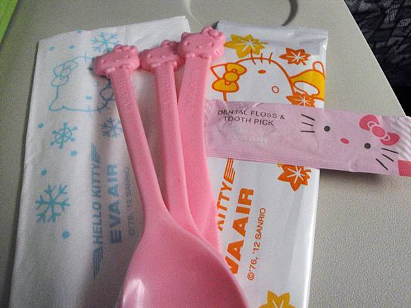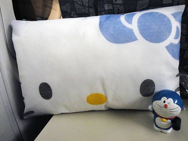 雖然不是Hello Kitty粉絲,但回程時也慕名選乘長榮吉蒂機,打算做一個多小時的粉色少女。