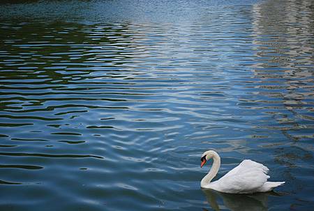 進門前左右兩旁分別是桔梗濠及大手濠,可以看到天鵝及鯉魚。