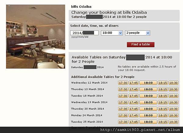 這次選擇了台場分店,戳進去後顯示有空位的時段。