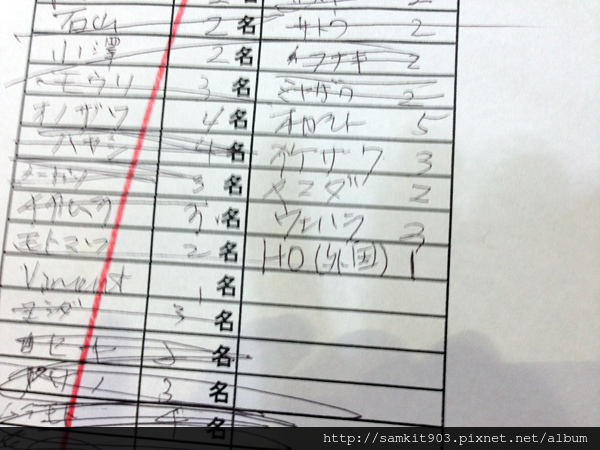 排隊是先寫下名字的,否則排大半天都輪不到。經過了這些日子,我大概懂得怎麼寫最方便。我姓「何」,比起寫漢字,拼音「HO」感覺比較容易給職員拼出來,然後我在後面會加(外国)兩字,讓他們知道我是外國人。職員喊名字時會喊「HO SAMA」,就知道是自己了。