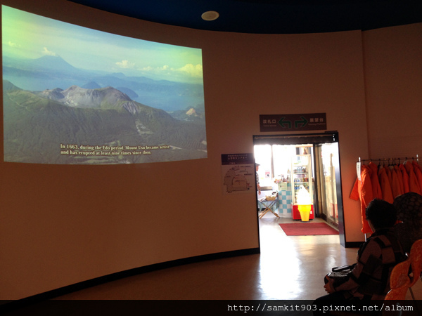站內播放著有珠山的歷史,另外也有大衣外借,方便冬天時登山。