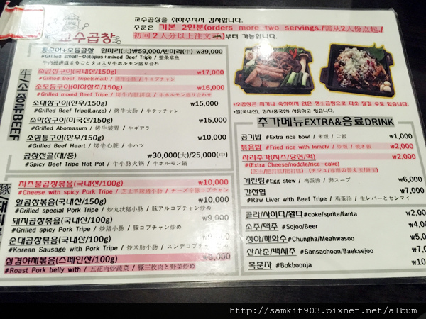 一進去服務員就指著MENU最上頭的字,讓我知道第一次下單最少要點2人份,我事前已得知,當然是沒問題。