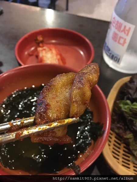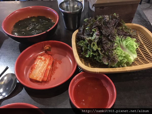 送上生菜、泡菜及對我而言也是比較淡的海帶湯。