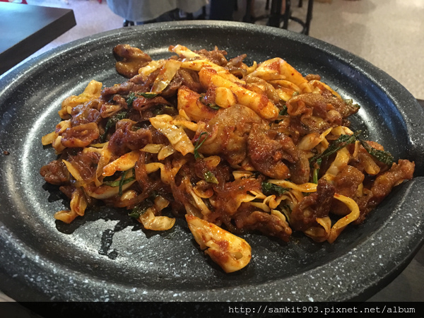 這是二人份的炒丸狀豬小腸,除了豬腸外,邋有年糕及薯粉,看起來份量還好,但一個人吃還是很撐。