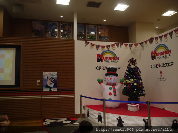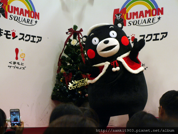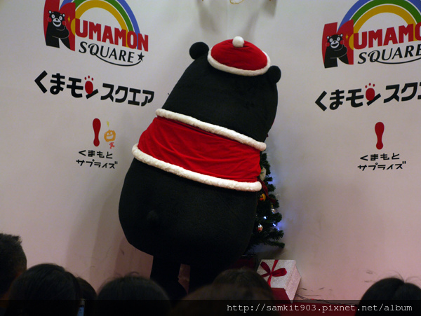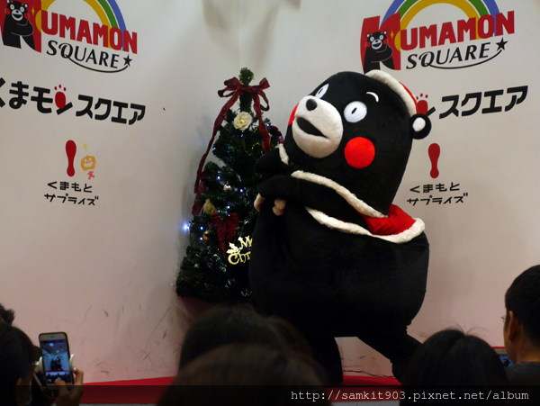 在表演過程中,部長不慎撞跌了聖誕樹上的Merry Christmas牌子。作為一隻成熟的熊本熊,部長姿勢妖嬈了掛了回去。