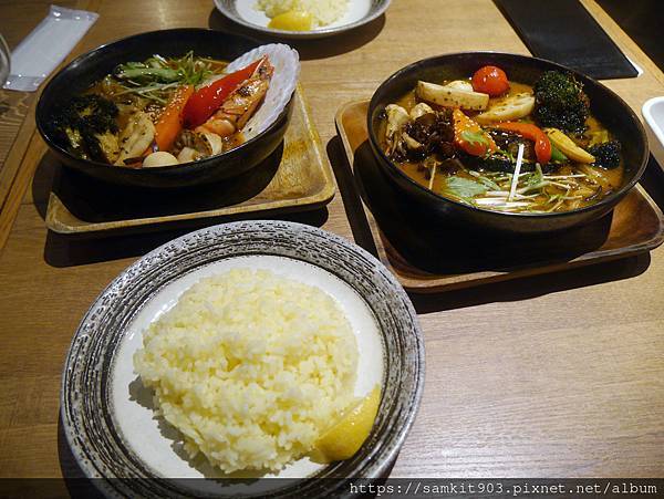 GARAKU主打「濃厚美味×秘傳香料×和風高湯」的湯頭,我們點了一份大海的恩惠海鮮湯咖哩和大地的恩惠15種野菜湯咖哩(大海和大地的恩惠都收入囊中了),推薦野菜咖哩,每種蔬菜都很好吃,尤其是出門在外不容易吸收蔬菜的時候,抓緊機會多吃點!