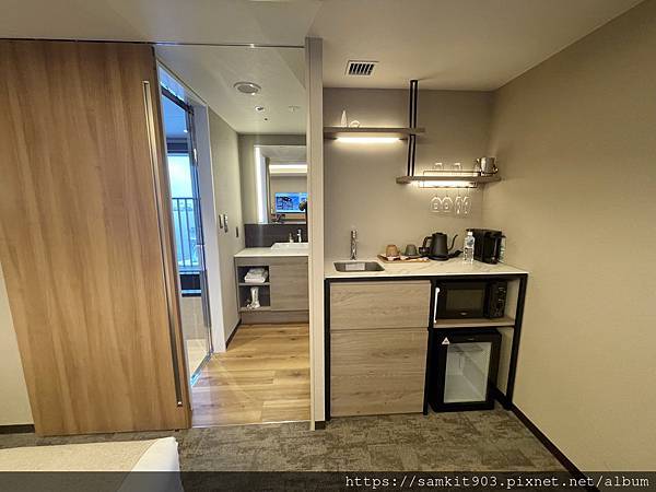 東急Stay系列的特色是,房內設有微波爐及洗手槽,而且個別房型提供料理台和電磁爐,可以簡單煮食。雖然我們沒有開火,不過也有善用來洗洗水果之類。