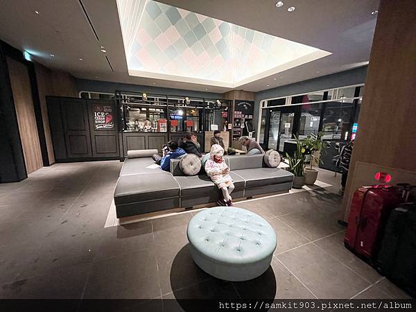 東急STAY函館朝市 燈之湯的大廳以黑色和木皮為主色調,雖面積不大但尚算舒適。