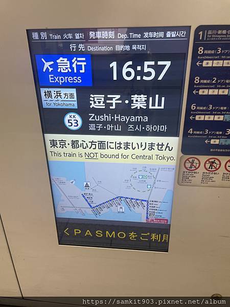 幸運乘到不用轉車的急行,要認準跟東京都心反方向的車喔。
