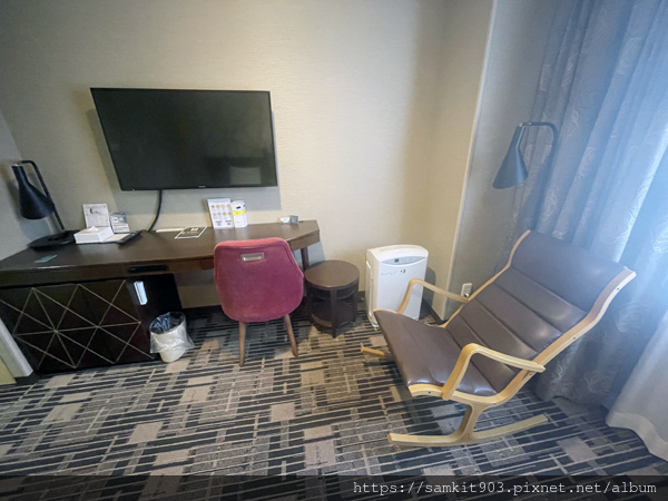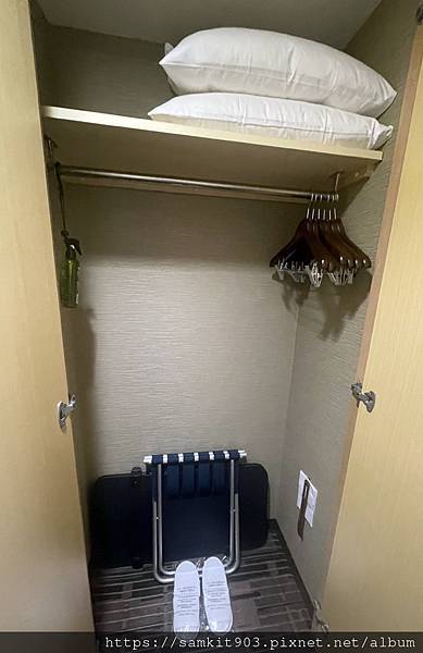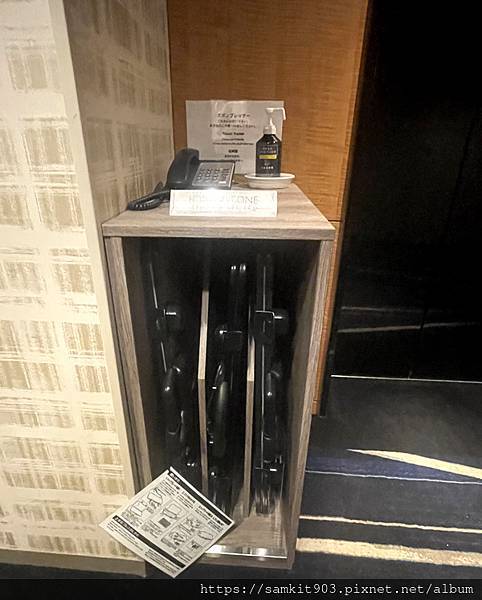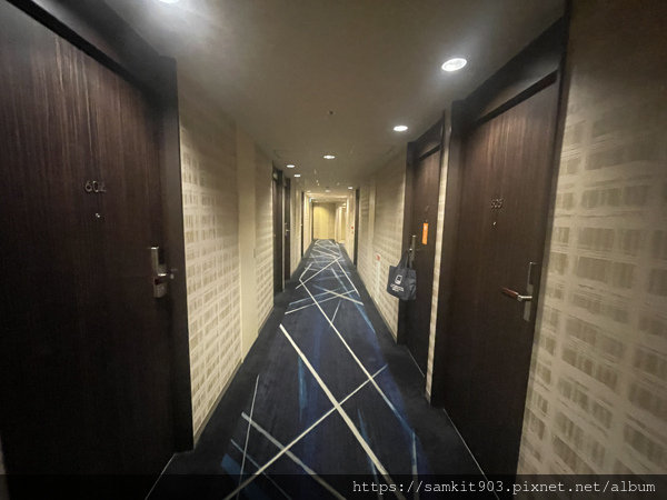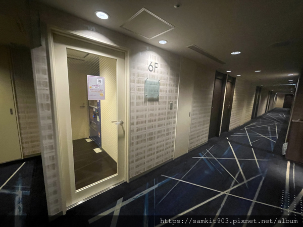 飯店5-14層為客室,我被安排在6樓,這一層設有自動販賣機,而梯廳放有熨褲機,供入住的商務客使用。