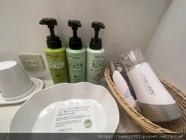 浴室雖小,但浴缸等設備都是齊全的,用品也是DHC的。