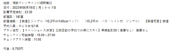 第二,這次找到的相鐵FRESA INN川崎站東口,在KNT 近畿日本ツーリスト早鳥價平均一晚5,850日圓。後來我更改行程,而KNT沒有「短縮」選項只能重訂,變成了6,750日圓一晚…嗚嗚