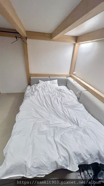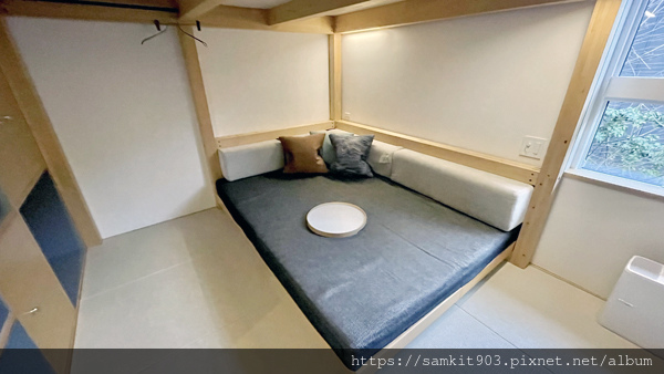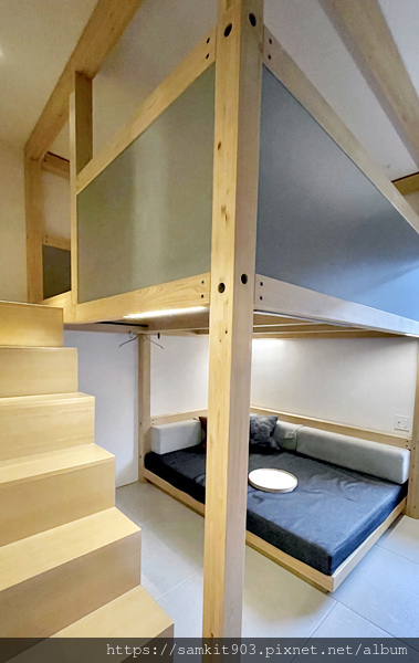 樓下沙發區可用櫃子中的床墊改裝成沙發床。雖然我們只有2個人,但為了大家都有比較寬敞的空間,我跟老媽一人一層。