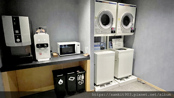 2樓公共空間設有洗衣房、飲水機、微波爐等設備,與一般青旅無異。