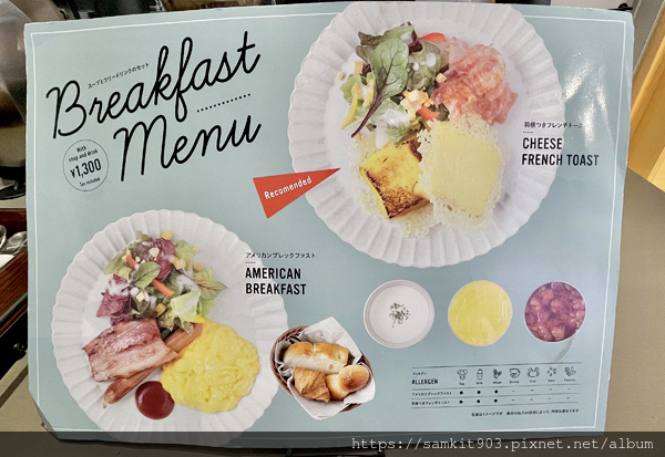 隔天早餐我們在飯店解決,24小時CAFE早上共提供3款早餐,包括常態的美式早餐和法式吐司,還有期間限定的莓果法式吐司。