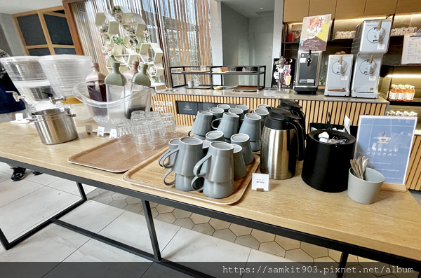 飲料是自助式的,果汁、牛奶、美式咖啡都可以喝到飽。