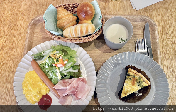 我們點了一份美式早餐和單點一份蛋餅,美式早餐附麵包籃和湯,超豐盛的。